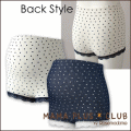 デニム地にドット柄&レースがとっても可愛い☆「マタニティショーツ足ぐりらくちんボクサータイプ☆オフホワイト」 |